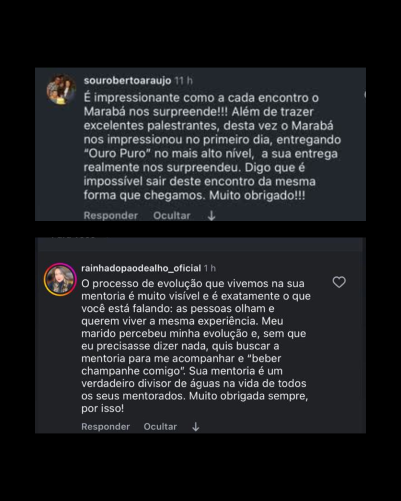 Marabá é Psicanalista, Treinador Comportamental com um método de desenvolvimento pessoal e espiritual que já mudou a vida de milhares de empresários.